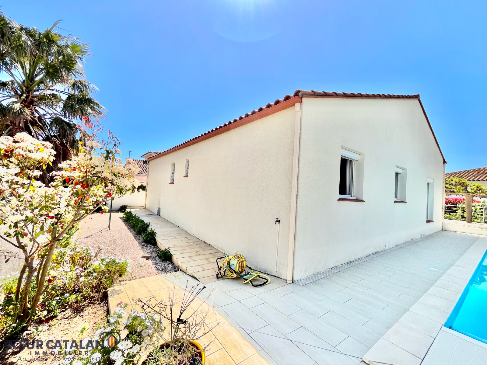 A VENDRE - NOUVEAUTÉ - THUIR - Située dans le quartier résidentiel le plus prisé de Thuir, très belle villa individuelle de plain-pied, édifiée sur une parcelle de 741 m2 .. Elle satisfera les plus exigeants d'entre vous, l'extérieur est aussi soigné que l'intérieur, parfaitement entretenue la villa offre une surface généreuse de 148m2 habitables avec un vaste salon - salle à manger et une cuisine américaine parfaitement équipée, soit un total de 80m2 de pièce à vivre, pour le confort de toute la famille ! Côté nuit, trois grandes chambres avec placards, une salle d'eau indépendante et un WC séparé. A l'extérieur , vous apprécierez son exposition Est/Ouest pour profiter du soleil toute la journée.. La piscine maçonnée de 10 mètres X 5 dispose d'une rampe d'accès et d'un bar intégré digne des grands hôtels, pour vos apéritifs entre amis ou en famille! Un superbe pool housse avec une cuisine d'été, un local technique et un atelier viennent compléter l'espace extérieur. Les terrasses qui entourent la villa sont entièrement de plain-pied, aucunes marches avec rampes d'accès aux normes pour personnes à mobilité réduite. Deux grandes allées permettant le stationnement d'un camping-car ou de plusieurs véhicules, et un espace garage couvert supplémentaire pour abriter un véhicule supplémentaire. D'autres prestations de confort à découvrir, comme la climatisation réversible, le nettoyage automatique de la piscine qui vous offriront un maximum de confort avec un minimum d'entretien... Cette villa de haute qualité est un petit havre de paix à Thuir. A découvrir sans tarder !
